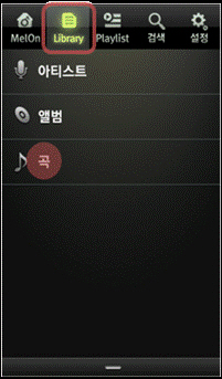 1. 다운로드 받은 음악은 'Library'탭에서 아티스트, 앨범, 곡, 장르별로