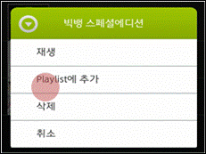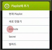 'Playlist에 추가'를 터치하세요. 3. 원하는 Playlist를 확인하시고 터치하시면, 선택한 Playlist에 곡이 추가 됩니다.