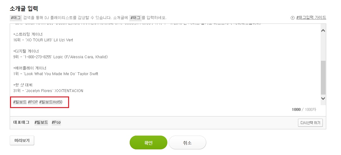 DJ플레이리스트의 태그는 어떻게 입력하나요? |