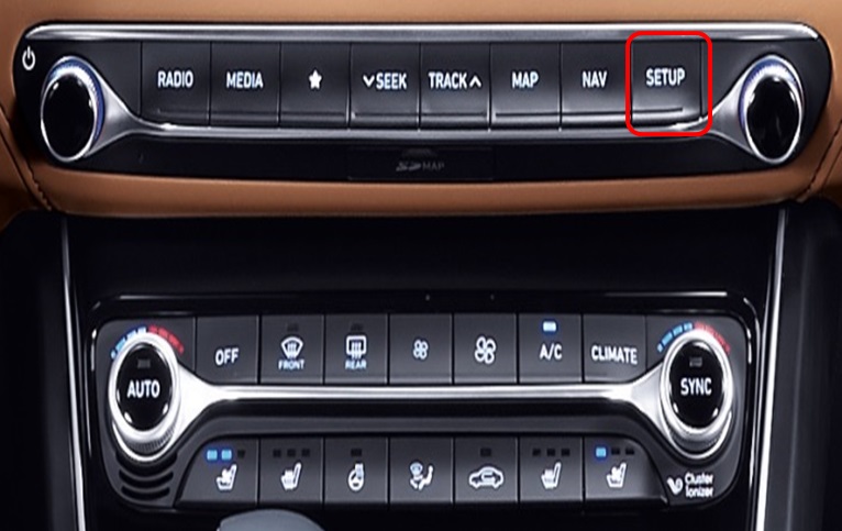 스마트폰에서 미러링크 인증서 정보를 체크해보세요 1. 연결>기타 연결>미러링크(삼성단말 기준)에 들어가셔서 Melon for 현대?제네시스 앱의 인증서가 현대로 되어있는지 확인해주세요 2. 차량의 헤드유닛에서 mirrorlink에 체크가 되어있나요? 헤드유닛에서 설정> 폰 프로젝션>Android>mirrorlink항목이 체크되어 있는지 확인해주세요. 해당 항목이 체크가 되어 있어야 사용이 가능합니다. ① 차량 내 내비게이션의 SETUP 버튼을 누릅니다.