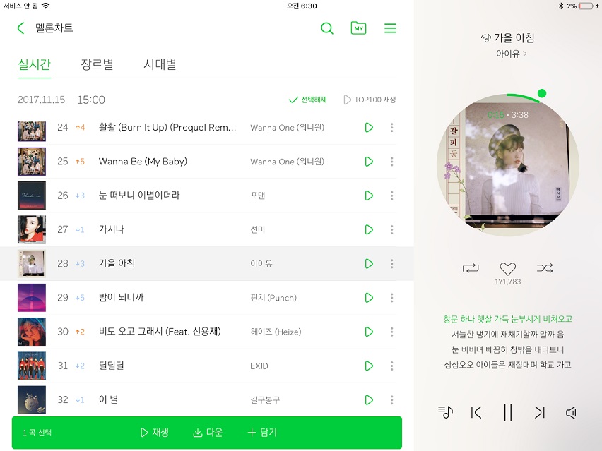 아이패드 멜론 앱에서 스트리밍 서비스는 어떻게 이용하나요 |